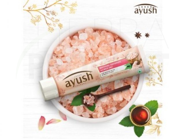 Lever Ayush Whitening Toothpaste obsahuje horskou sůl, která je v ajurvédě známá jako nejzdravější forma soli a po staletí se využívá pro bělení zubů. Lever Ayush Whitening Toothpaste obsahuje Arimedas Tailam – unikátní ajurvédská směs 38 bylin, která pomáhá dělat zuby silnější a zabraňuje zubnímu kazu.