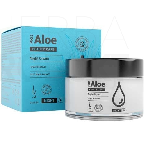 Pro Aloe Night Cream 50 ml je účinná noční péče z inovativní řady Pro Aloe, která byla vytvořena pro všechny typy pleti, zejména ty, které vyžadují intenzivní regeneraci, posílení a hydrataci. Tyto přípravky byly kromě využití blahodárných účinků aloe vera obohaceny mnoha účinnými látkami, jež s aloe působí synergicky, nebo doplňují či posilují blahodárné účinky kosmetických přípravků na naši pleť.