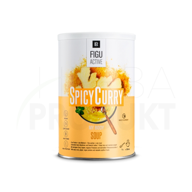 Složení: sójový proteinový izolát (28 %), maltodextrin, bramborové vločky (13 %) (brambory (99 %), emulgátor: mono- a diglyceridy mastných kyselin; stabilizátor: difosforečnany; extrakt z koření), inulin (8 %), směs kari koření (5 %) (koriandr, kurkuma, pískavice řecké seno, zázvor, chilli, kmín, kardamom, nové koření, libeček, římský kmín), vývar (hydrolyzovaný kukuřičný protein, sůl, slunečnicový olej), emulgátor: sójové lecitiny; hrachový protein (3 %), mouka z červené čočky (3 %), přírodní aromatické látky, mrkev (2 %), kokosový olej, cibule (2 %), fosforečnan draselný, uhličitan vápenatý, pórek (1 %), proteinový izolát bobu obecného (1 %), kuchyňská sůl, petržel (1 %), zázvorový prášek (1 %), hydroxid hořečnatý, prášek ze slupek psyllia (1 %), černý pepř (0,2 %), kyselina L-askorbová, muškátový oříšek, zahušťovadlo: guma guar; protispékavá látka: oxid křemičitý; pyrofosforečnan železitý, oxid zinečnatý, nikotinamid, D-?-tokoferylacetát, síran manganatý, D-pantothenát vápenatý, sladidlo: steviol-glykosidy ze stévie; antioxidant: alfa-tokoferol; riboflavin, pyridoxin hydrochlorid, thiamin mononitrát, retinylacetát, uhličitan měďnatý, kyselina pteroylmonoglutamová, jodid sodný, seleničitan sodný, fylochinon, D-biotin, cholekalciferol, kyanokobalamin.