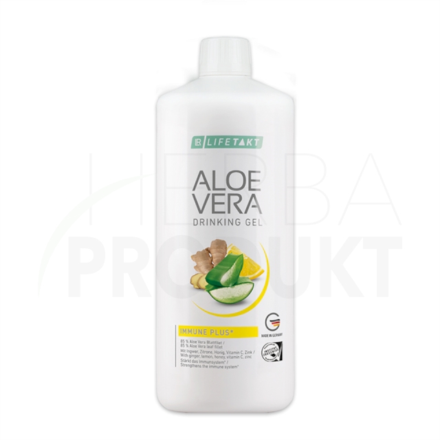 Aloe Vera Drinking Gel Immune Plus pro posílení imunitního systému, jeho aktivaci a stimulaci díky unikátní kombinaci aktivních složek. V porovnání s Aloe Vera Drinking Gelem Traditional s medem obsahuje Immune Plus navíc 6 posilovačů imunity: zázvor, citron, med, vitamin C, zinek a selen. Immune Plus je tak skutečným odborníkem na imunitní systém a komplexním posílením tělu vlastního imunitního systému.