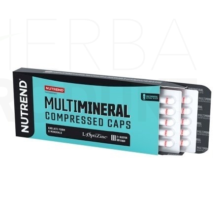Složení produktu MULTIMINERAL COMPRESSED CAPS: bisglycinát vápenatý, bisglycinát hořečnatý, uhličitan hořečnatý, želatinová tobolka (želatina, barviva: oxid titaničitý, E 132), uhličitan vápenatý, oxid hořečnatý, mléčnan chromitý, L-OptiZinc® (mono-L-methionin sulfát zinečnatý), plnidlo stearan hořečnatý, organicky vázaný selen z kvasinek, bisglycinát železnatý, protispékavá přísada oxid křemičitý. L-OptiZinc® je registrovaná ochranná známka InterHealth N.I.