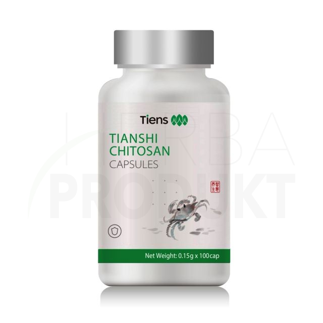 TIENS Chitosan se vyrábí z krunýřů červenonohých krabů poustevníčků. Je typický velmi vysokou (85 %) mírou deacetylace chitinu. Čím vyšší míra deacetylace této organické sloučeniny, tím silnější bude biochemická aktivita získaného chitosanu. Proto je toto složení velice účinné. Lidské tělo chitosan obsažený v tomto přípravku netráví ani jej nevstřebává. Jakmile chitosan vstoupí do žaludku, výrazně díky vodě, na niž narazí, nabyde na objemu, a účinně tak potlačí pocit hladu. Chitinová vlákna navíc obalují molekuly tuku, které jsou pak pro trávicí enzymy nestravitelné. Jedna molekula chitosanu takto obalí pětinásobek své váhy tuku, který pak tělo jednoduše vyloučí. Zároveň, jak potvrdil vědecký výzkum, nedochází k omezení vstřebatelnosti vitamínů A, D a E rozpustných v tucích.