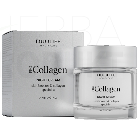 Pro Collagen Night Cream je noční krém s regeneračním a intenzivním hydratačním účinkem. Obsahuje 7 typů kolagenových složek a komplex 5 typů kyseliny hyaluronové. Bohaté krémové složení zpevňuje a redukuje jemné linky a vrásky. Svými účinnými látkami pokožku také vyživuje. Kolagen zajišťuje hloubkovou hydrataci, zpevňuje a výrazně zlepšuje pružnost pokožky. Pravidelné používání krému má liftingový účinek, zlepšuje vypnutí, tón a stav pleti.