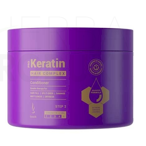 Kondicionér Pro Keratin Hair Complex Conditioner je revitalizační podpora pro vlasy. Jedná se o kombinaci účinných látek, jako jsou: avokádový olej, výtažek z malin, výtažek z pupečníku asijského, hydrolyzovaný keratin, panthenol a bambucké máslo. Toto spojení umožnilo vytvořit ještě lepší vlasovou péči.