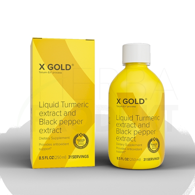 Objevte X GOLD, prémiový doplněk stravy, který kombinuje silné vlastnosti vodného extraktu z kurkumy s piperinem pro lepší absorpci. Tato zlatavá tekutá receptura nabízí výjimečnou přirozenost, bohatost a podíl aktivních složek, což vám zajistí plné využití proslulých antioxidačních vlastností kurkumy. X GOLD je smíchaný s glycerolovým základem a je navržen pro každodenní použití, takže je snadným doplňkem vaší wellness rutiny.